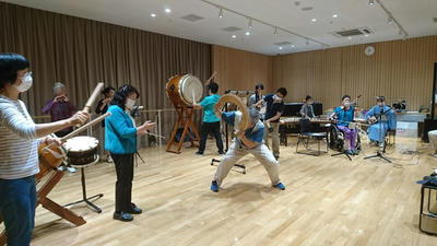 奥山さんは東京にも活動拠点を置いていますが、現在、東京の仕事は自粛中です。コロナ災禍前は、府中でのワークショップなども始めていたところでした。コロナの収束とともに、また活動を再開されることでしょう。東京では『東京よされ会』という八丈太鼓のサークルを主宰しています。