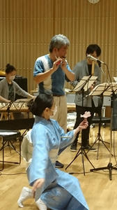 山田さんが今回踊ってくれた、さくら元禄、小鳥の歌、の踊りはすべて創作です。素晴らしい演劇的な日舞で大評判でした。福原氏の笛の弟子であるほか、出身の福岡を行き来し、博多どんたくの三味線なども演奏します。また、戦争を題材にした紙芝居をもって、ボランティアで学校などで子供たちに見せたりしています。