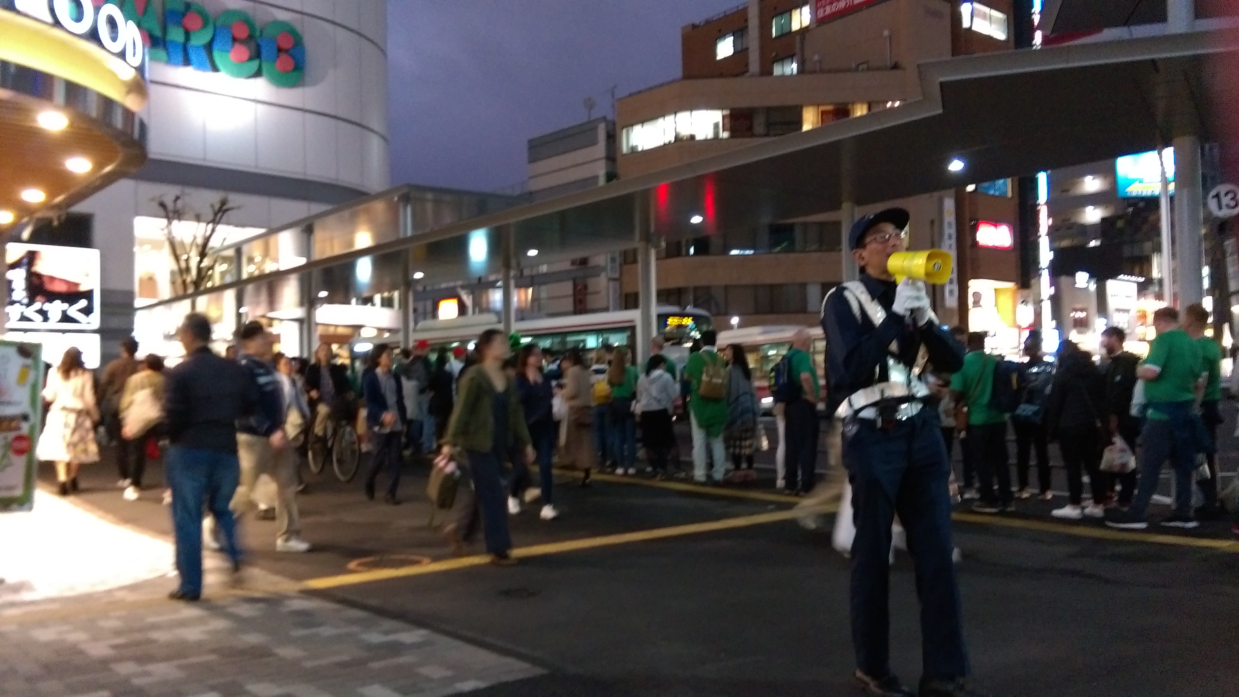 しかし、涙をぬぐい、私はまた駅前に向かった。布テープをコンビニで買って弓をつなげてみる。ふと気づくとぼろ負けしたアイルランド人が大量に動き出した。終わったらしい。