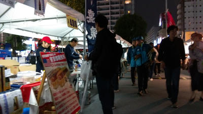 というわけで、肝心な時にはいつも切れている胡弓の弦を張り直し、一番目立つ警察や出店会場入り口で胡弓を弾き始めた。