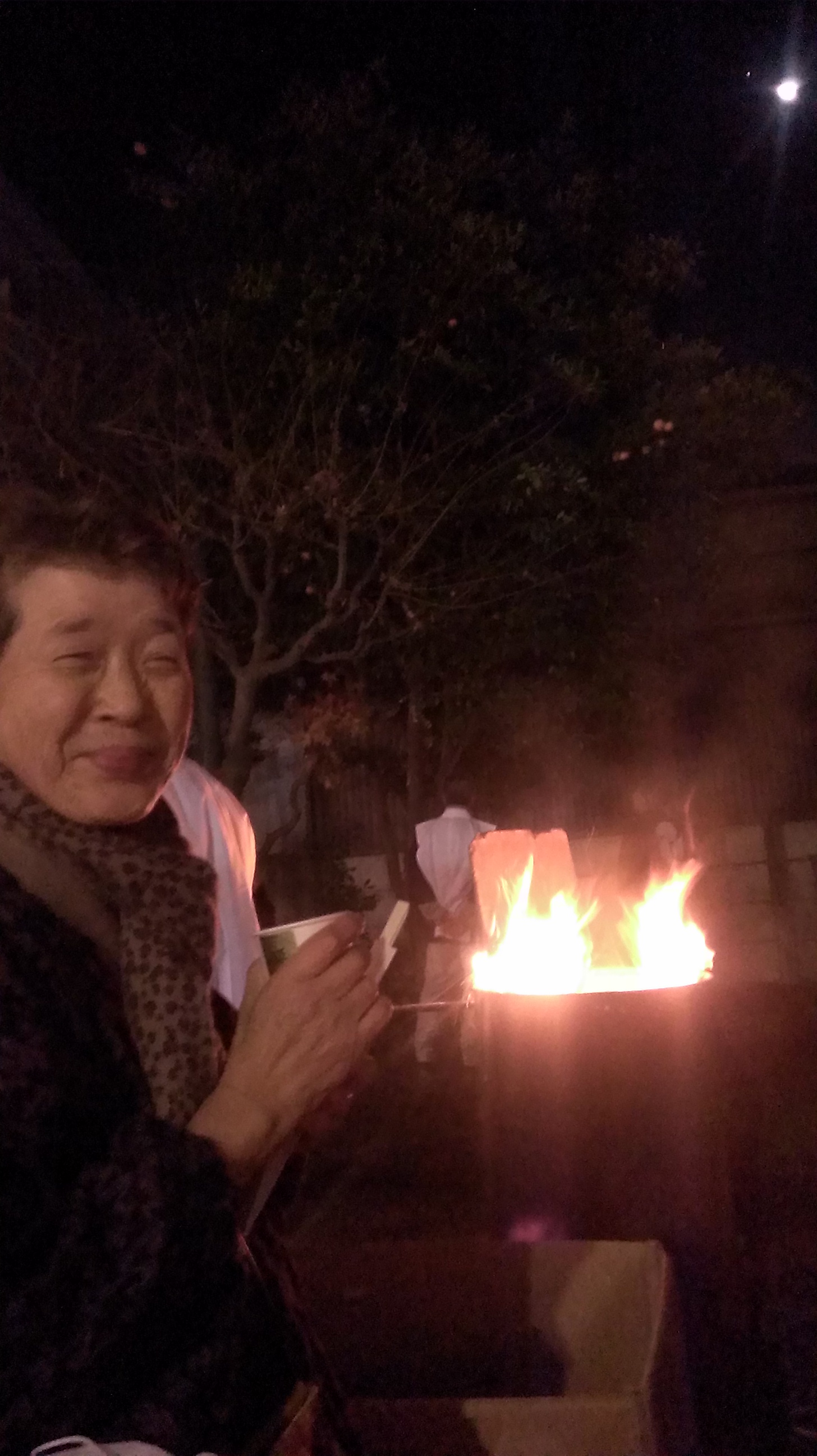 一人でこんな寒い夜にここまでこられた。お参りして太鼓も叩いた。願いがかなったぞ。