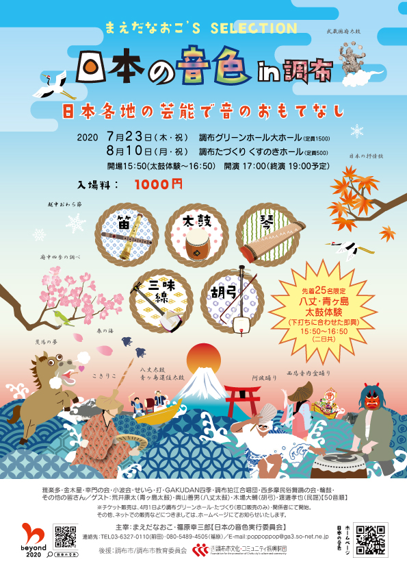 来年の7月23日と8月10日に我が調布にて、総勢80名程が集結し、グリーンホールとくすのきホールにて和の音色と各地の芸能を取り入れたコンサートを行います。