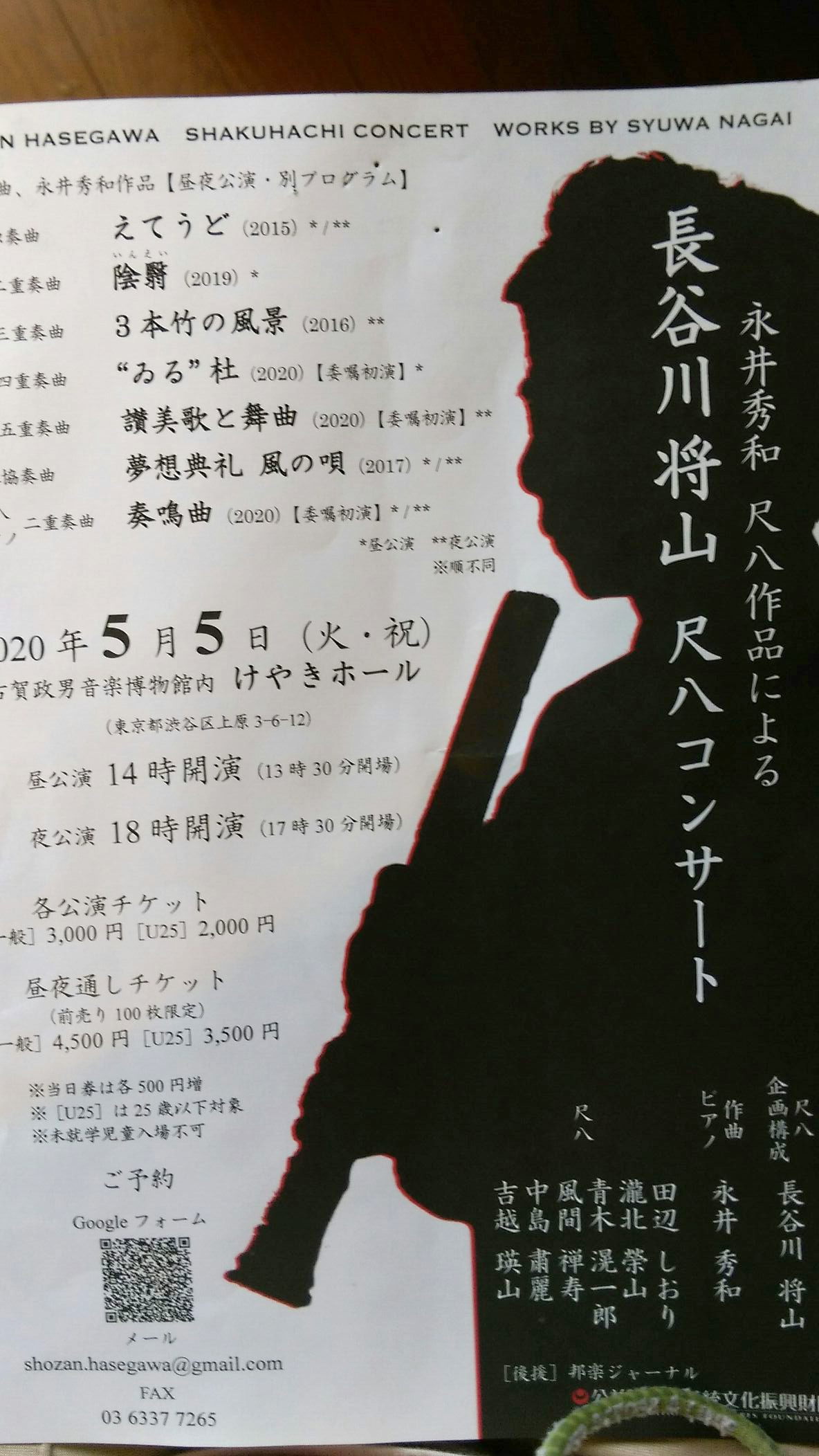 この3月からの稽古のお誘い、『日本の音色』の参加者募集と、コロナ中でも変わらずのペースでお弟子さんにメールを送り続けていたが、なかなか反応はなく、5月に2回取っていた稽古場も、我々2人しかいなかった。YouTube用の動画を撮ったりしてやり過ごしながら、二人ともコンサートの話もあまりしなかった。しかし、やっと、昨日あたりから『結構やる気のあるメンバーが増えてきた。』と言っていたっけ。